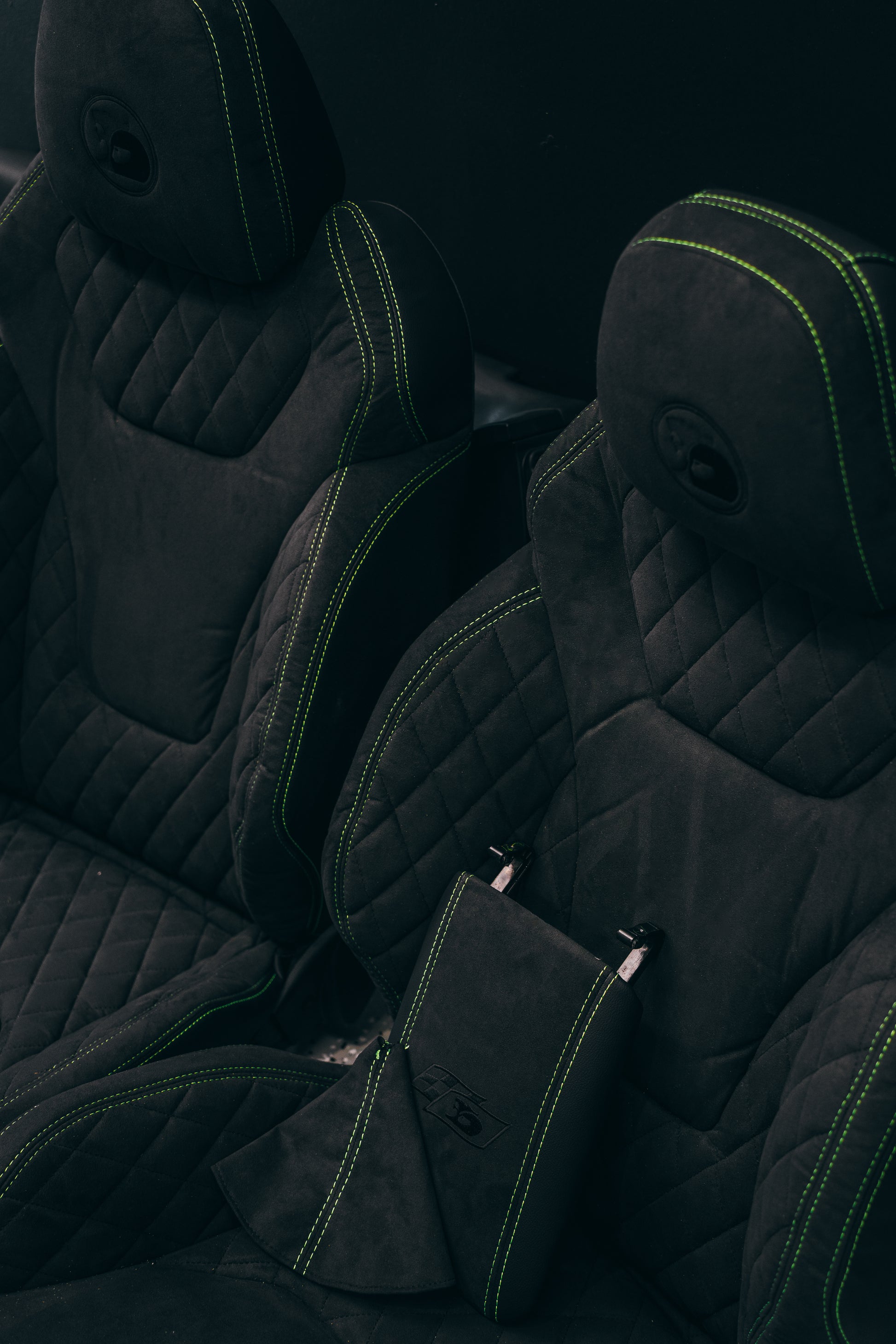 This is one of our killer HSV Style combinations to suit VF Commodore. Charcoal Alcantara, Lime Green Outer Stitching, Charcoal Black Inner Stitching, Diamond Stitched, Charcoal Black HSV Embroidered Headrest & Passenger Dash Pad, Rear Seats to suit (Optional for sedans), Doorcards to suit, Console lid to suit & Dash pads to suit (VF ONLY, VE does NOT include dash pads). Doorcard and console embroidery for custom order only please contact to discuss the option.